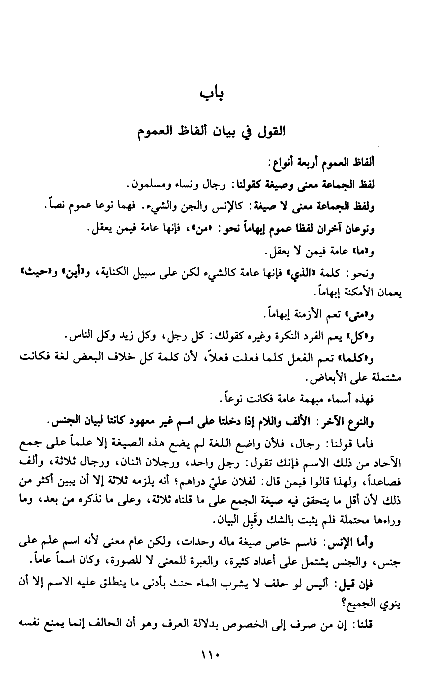 القول في بيان ألفاظ العموم