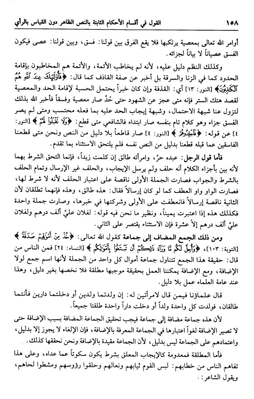 فأما المطلقة فمعدومة كالإيجاب المعلق بشرط يكون سكوتاً عما عداه، وعلى هذا تفاهم الناس من خطابهم: لبس القوم ثيابهم ونعالهم وحلقوا رؤوسهم ومشطوا لحاهم، ويقول الشاعر:
