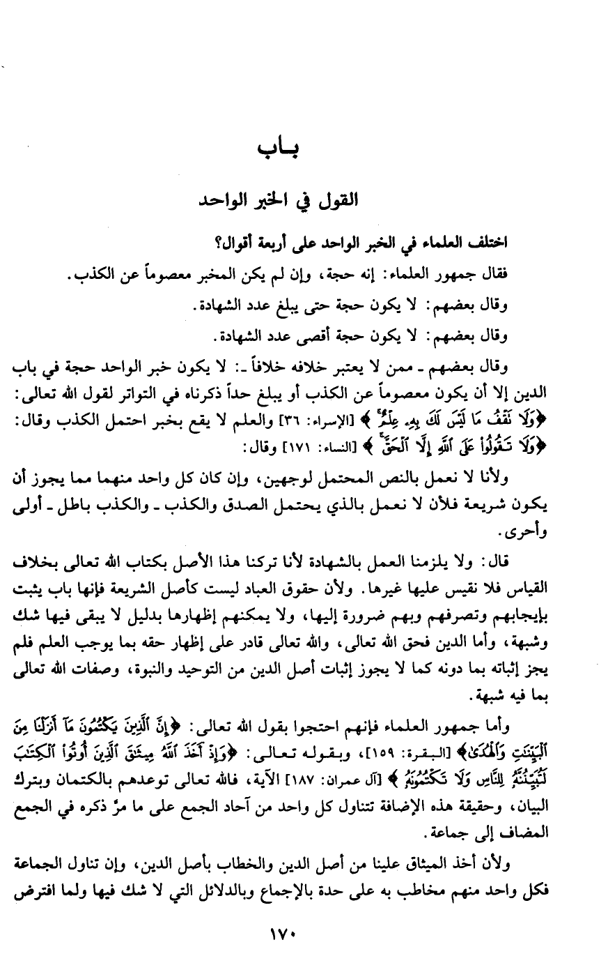 القول في الخبر الواحد