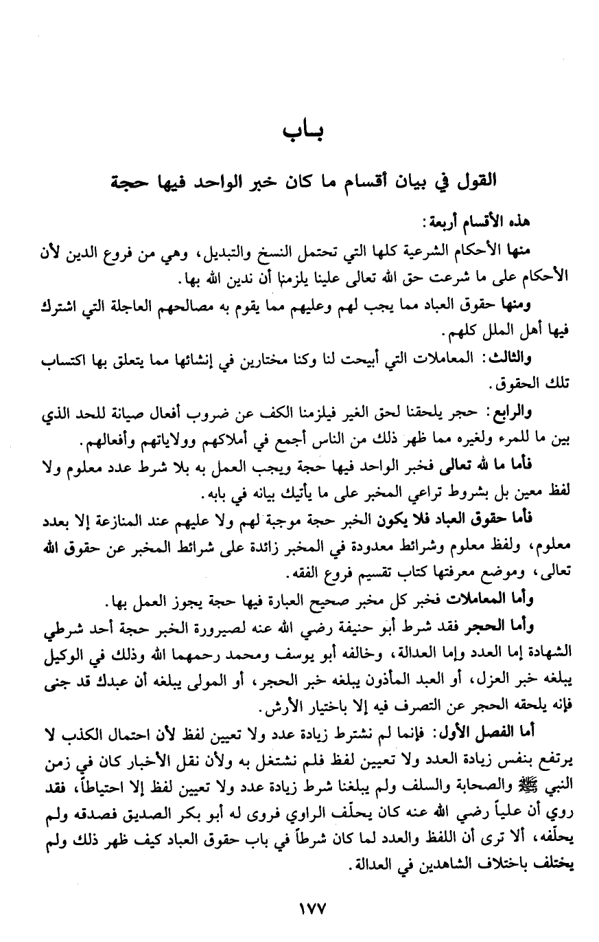 القول في بيان أقسام ما كان خبر الواحد فيها حجة