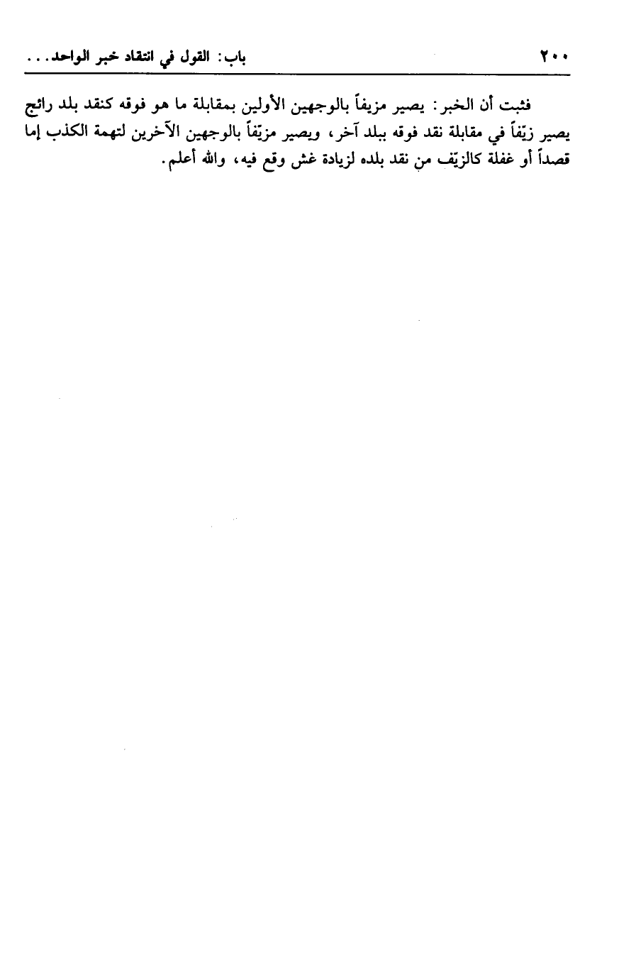 فثبت أن الخبر: يصير مزيفاً بالوجهين الأولين بمقابلة ما هو فوقه كنقد بلد رائج يصير زيفاً في مقابلة نقد فوقه ببلد آخر، ويصير مزيفاً بالوجهين الآخرين لتهمة الكذب إما قصداً أو غفلة كالزيف من نقد بلده لزيادة غش وقع فيه، والله أعلم.