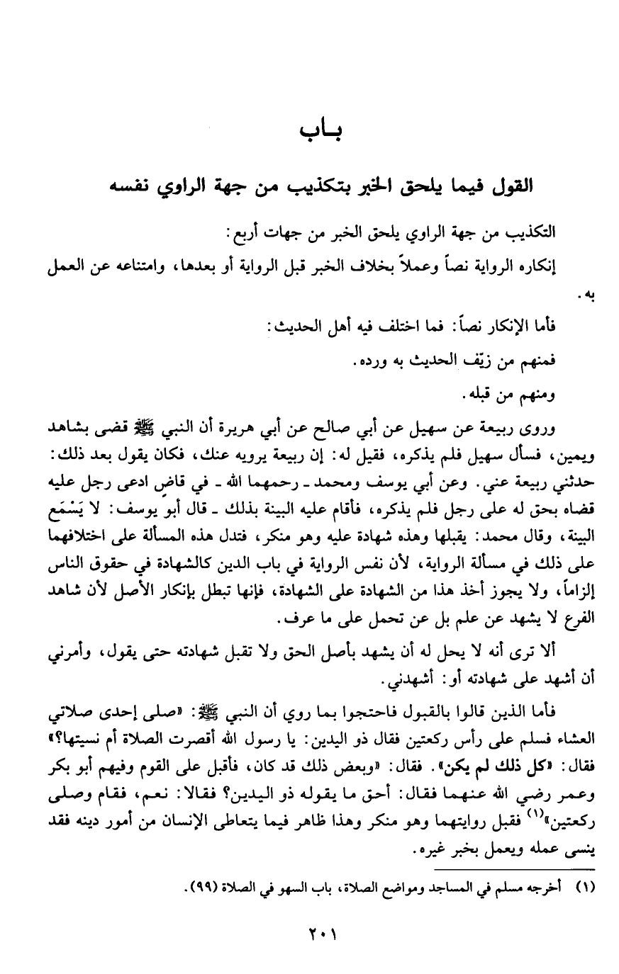 القول فيما يلحق الخبر بتكذيب من جهة الراوي نفسه
