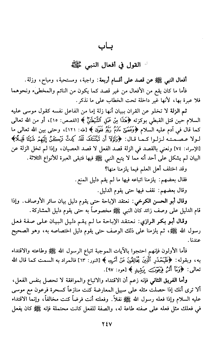 القول في أفعال النبي صلى الله عليه وسلم