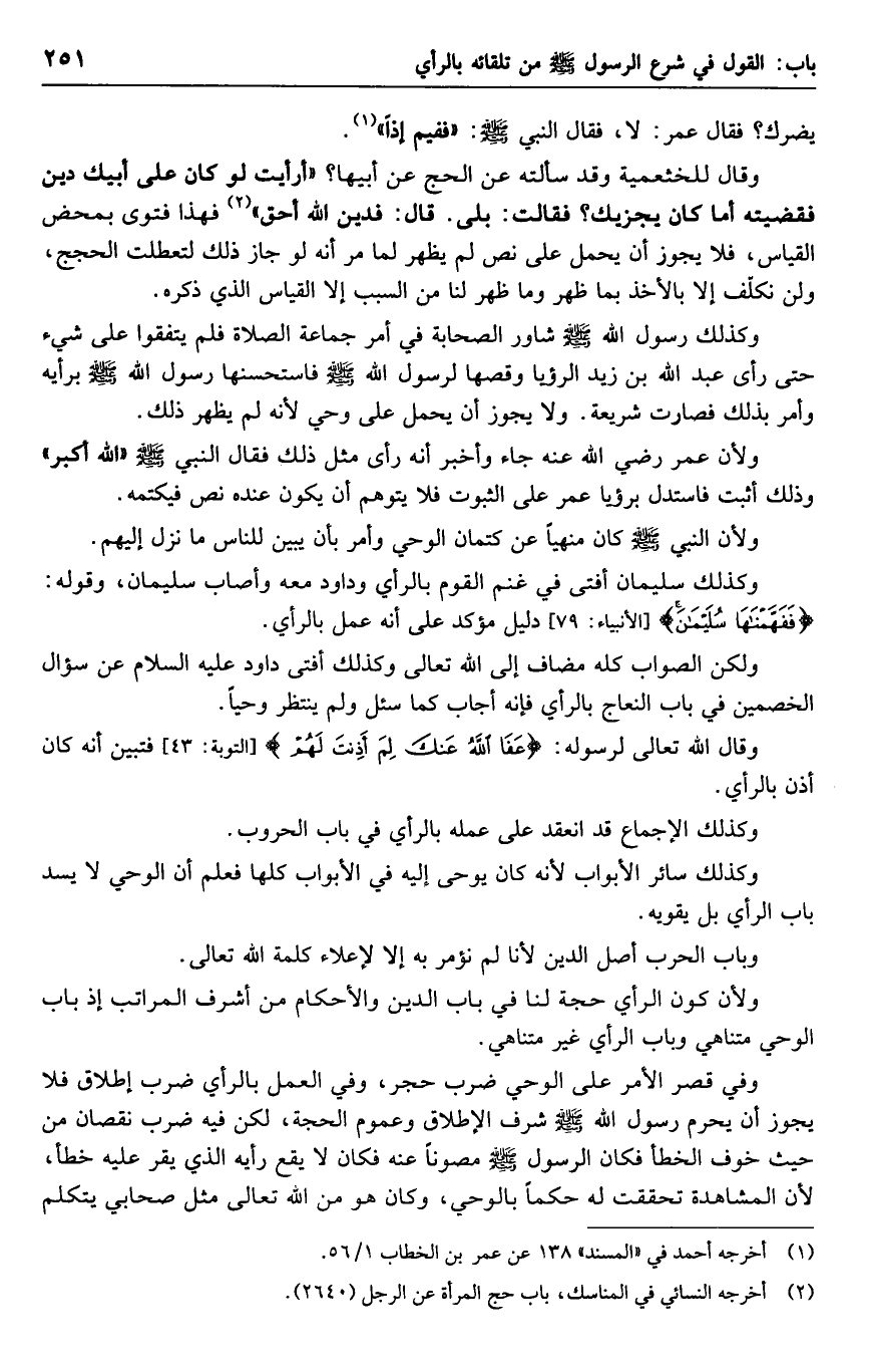 وكذلك سائر الأبواب لأنه كان يوحى إليه في الأبواب كلها فعلم أن الوحي لا يسد باب الرأي بل يقويه.