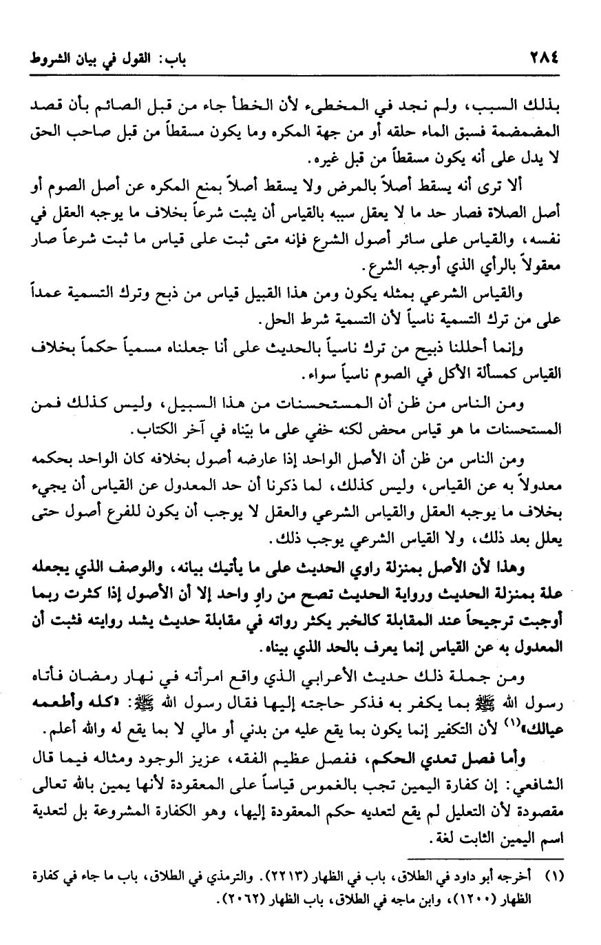 والقياس الشرعي بمثله يكون ومن هذا القبيل قياس من ذبح وترك التسمية عمدًا على من ترك التسمية ناسيًا لأن التسمية شرط الحل.