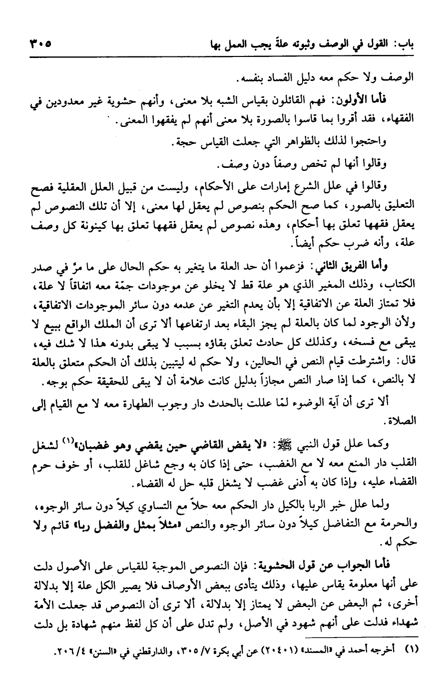 فأما الأولون: فهم القائلون بقياس الشبه بلا معنى، وأنهم حشوية غير معدودين في الفقهاء، فقد أقروا بما قاسوا بالصورة بلا معنى أنهم لم يفقهوا المعنى.