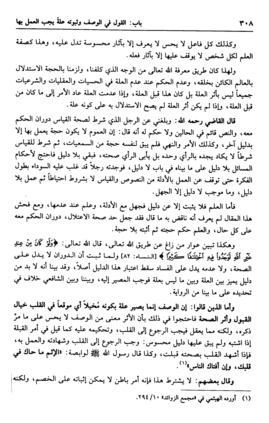 ولهذا كان طريق معرفة الله تعالى من الوجه الذي كلفنا، ولزمنا بالحجة الاستدلال بالعالم الكائن بخلقه، وعدم الحكم عند عدم العلة في الحسيات والعقليات والشرعيات جميعًا ليس بأثر العلة بل كان هذا قبل العلة، وإذا عدمت العلة عاد الأمر إلى ما كان من قبل العلة، وإذا لم يكن أثر العلة لم يصح الاستدلال به على كونه علة.