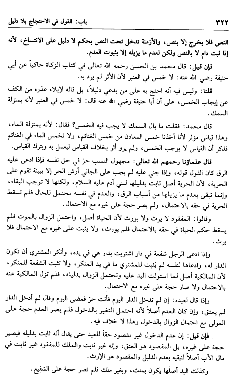 النص فلا يخرج إلا بنص، والأزمنة تدخل تحت النص بحكم لا دليل على الانتساخ، لأنه إذا ثبت دام لا بالنص ولكن لعدم ما يزيله إلا بثبوت العدم.
