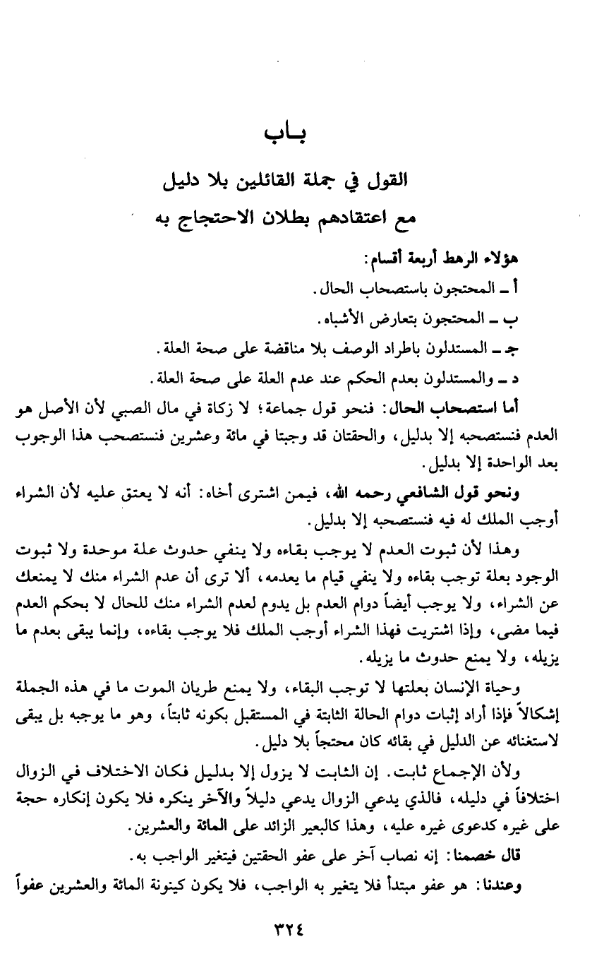 وحياة الإنسان بعلتها لا توجب البقاء، ولا يمنع طريان الموت ما في هذه الجملة إشكالًا فإذا أراد إثبات دوام الحالة الثابتة في المستقبل بكونه ثابتًا، وهو ما يوجبه بل يبقى لاستغنائه عن الدليل في بقائه كان محتجًا بلا دليل.
