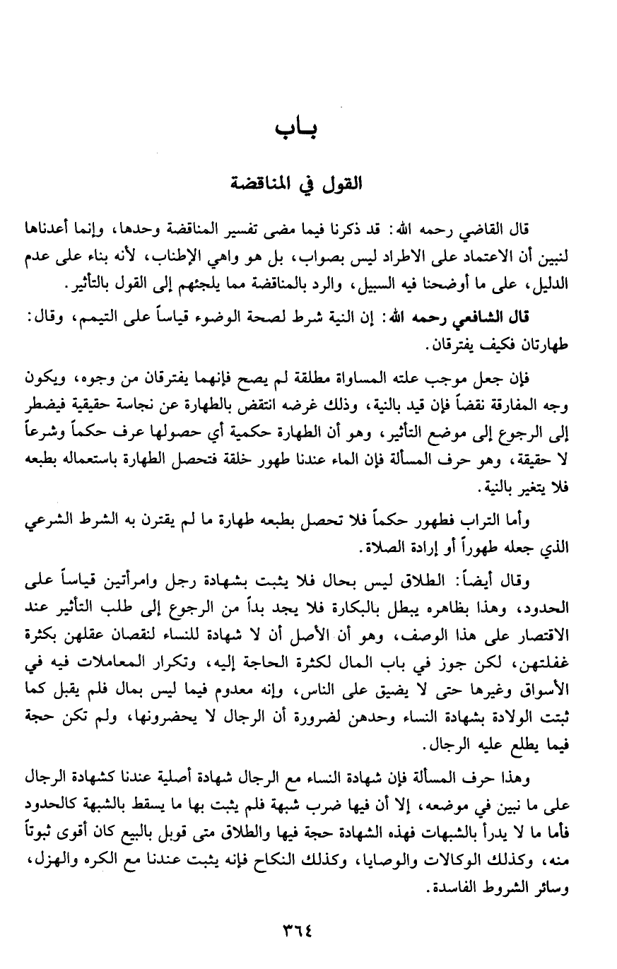 قال القاضي رحمه الله: قد ذكرنا فيما مضى تفسير المناقضة وحدها، وإنما أعدناها لنبين أن الاعتماد على الاطراد ليس بصواب، بل هو واهي الإطناب، لأنه بناء على عدم الدليل، على ما أوضحنا فيه السبيل، والرد بالمناقضة مما يلجئهم إلى القول بالتأثير.
