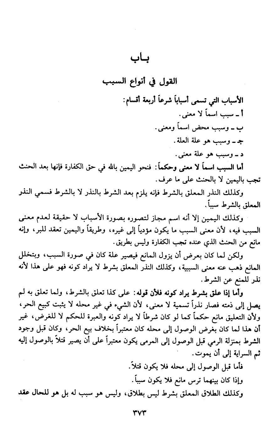 ولكن لما كان بعرض أن يزول المانع فيصير علة كان في صورة السبب، وبتخلل المانع ذهب عنه معنى السببية، وكذلك النذر المعلق بشرط لا يراد كونه فهو على هذا لأنه نذر للمنع عن الشرط.