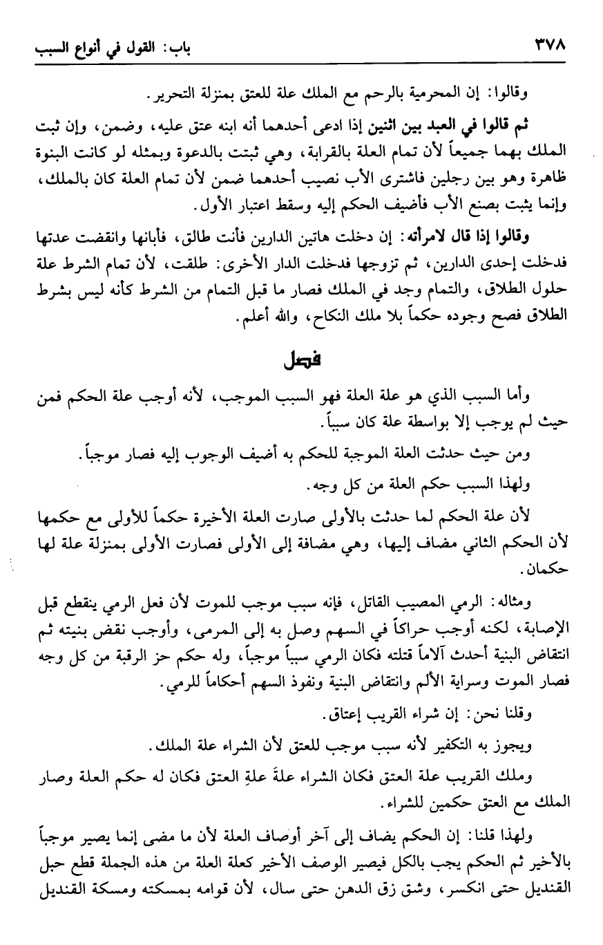 وأما السبب الذي هو علة العلة فهو السبب الموجب، لأنه أوجب علة الحكم فمن حيث لم يوجب إلا بواسطة علة كان سببا.