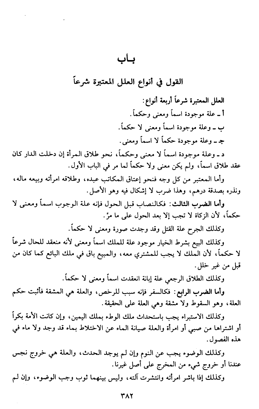 القول في أنواع العلل المعتبرة شرعا