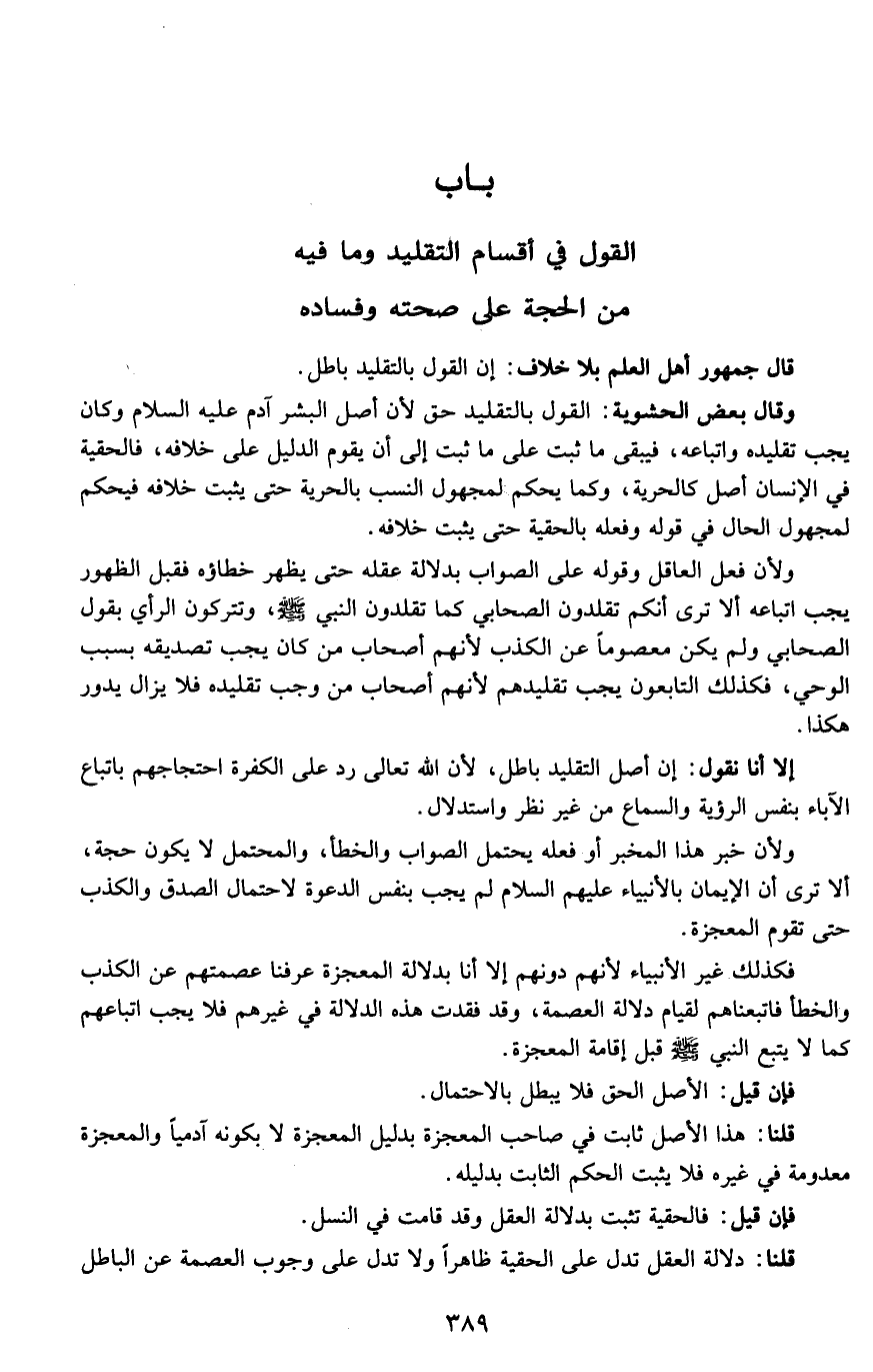 إلا أنا نقول: إن أصل التقليد باطل، لأن الله تعالى رد على الكفرة احتجاجهم بإتباع الآباء بنفس الرؤية والسماع من غير نظر واستدلال.