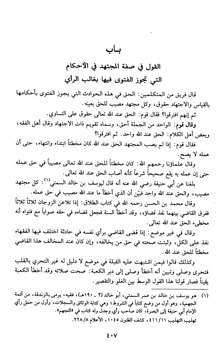 وقال قوم: الواحد من الجملة أحق، وسماه تقويم ذات الاجتهاد وقال أهل الفقه، وبعض أهل الكلام: الحق عند الله واحد. ثم افترقوا؟
