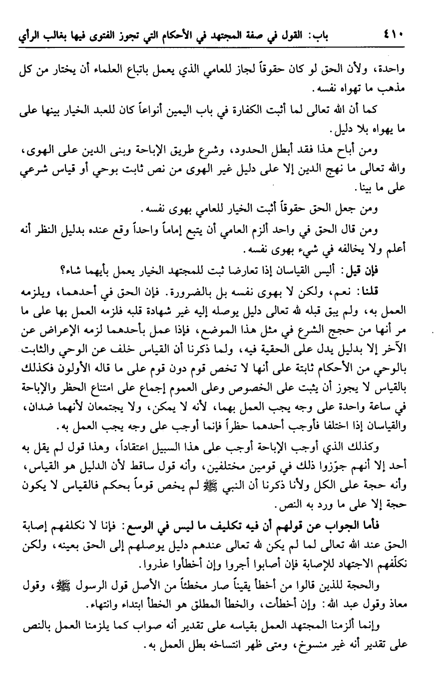 واحدة، ولأن الحق لو كان حقوقاً لجاز للعامي الذي يعمل باتباع العلماء أن يختار من كل مذهب ما تهواه نفسه.