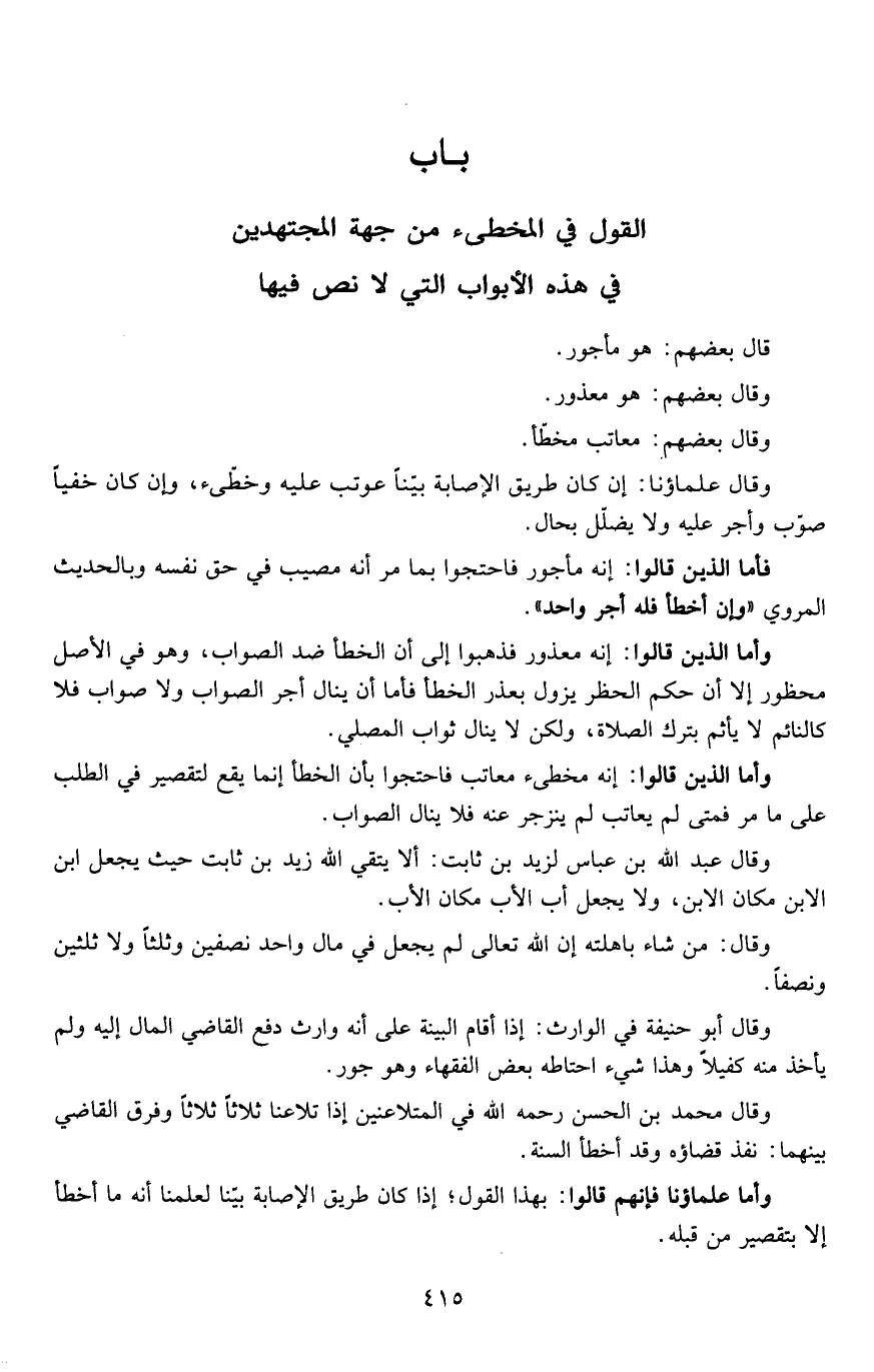 القول في المخطئ من جهة المجتهدين في هذه الأبواب التي لا نص فيها