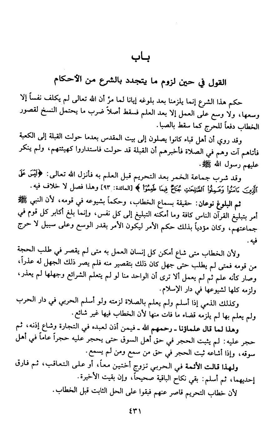 القول في حين لزوم ما يتجدد بالشرع من الأحكام
