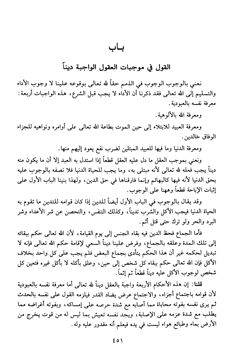 القول في موجبات العقول الواجبة ديناً