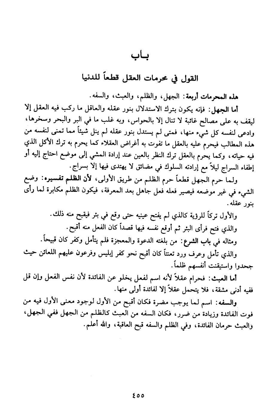 هذه المحرمات أربعة: الجهل، والظلم، والعبث، والسفه.