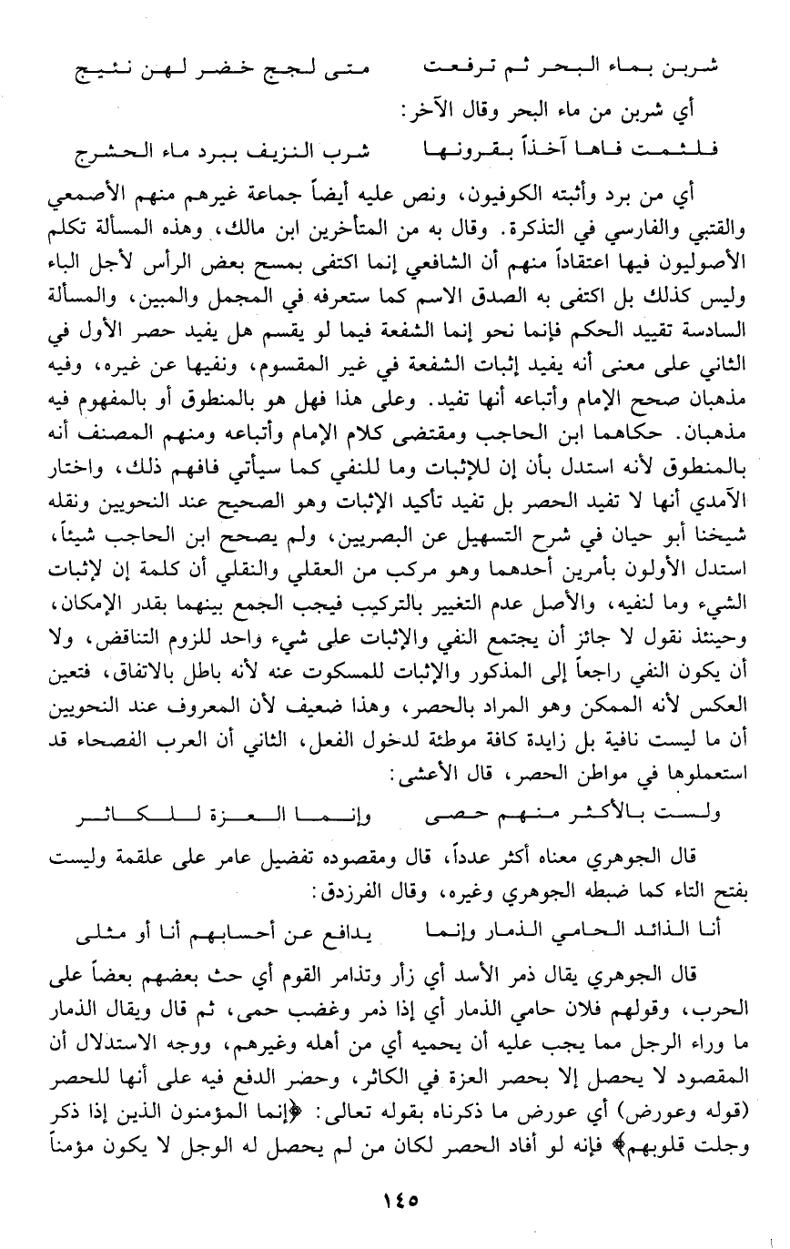 أي: من برد وأثبته الكوفيون، ونص عليه أيضا جماعة غيرهم منهم: الأصمعي والقتيبي والفارسي في التذكرة, وقال به من المتأخرين ابن مالك، وهذه المسألة تكلم الأصوليون فيها اعتقادا منهم أن الشافعي إنما اكتفى بمسح بعض الرأس لأجل الباء وليس كذلك, بل اكتفى به لصدق الاسم كما ستعرفه في المجمل والمبين، والمسألة السادسة: تقييد الحكم فإنما نحو إنما الشفعة فيما لو يقسم هل يفيد حصر الأول في الثاني على معنى أنه يفيد إثبات الشفعة في غير المقسوم، ونفيها عن غيره؟ وفيه مذهبان صحح الإمام وأتباعه أنها تفيد, وعلى هذا فهل هو بالمنطوق أو بالمفهوم؟ فيه مذهبان, حكاهما ابن الحاجب, ومقتضى كلام الإمام وأتباعه ومنهم المصنف أنه بالمنطوق؛ لأنه استدل بأن إن للإثبات وما للنفي كما سيأتي فافهم ذلك، واختار الآمدي أنها لا تفيد الحصر بل تفيد تأكيد الإثبات وهو الصحيح عند النحويين, ونقله شيخنا أبو حيان في شرح التسهيل عن البصريين، ولم يصحح ابن الحاجب شيئا، استدل الأولون بأمرين أحدهما وهو مركب من العقلي والنقلي: أن كلمة إن لإثبات الشيء وما لنفيه، والأصل عدم التغيير بالتركيب فيجب الجمع بينهما بقدر الإمكان، وحينئذ نقول: لا جائز أن يجتمع النفي والإثبات على شيء واحد للزوم التناقض, ولا أن يكون النفي راجعا إلى المذكور والإثبات للسكوت عنه؛ لأنه باطل بالاتفاق، فتعين العكس لأنه الممكن وهو المراد بالحصر، وهذا ضعيف لأن المعروف عند النحويين أن ما ليست نافية بل زائدة كافة موطئة لدخول الفعل. الثاني: أن العرب الفصحاء قد استعملوها في مواطن الحصر، قال الأعشى: