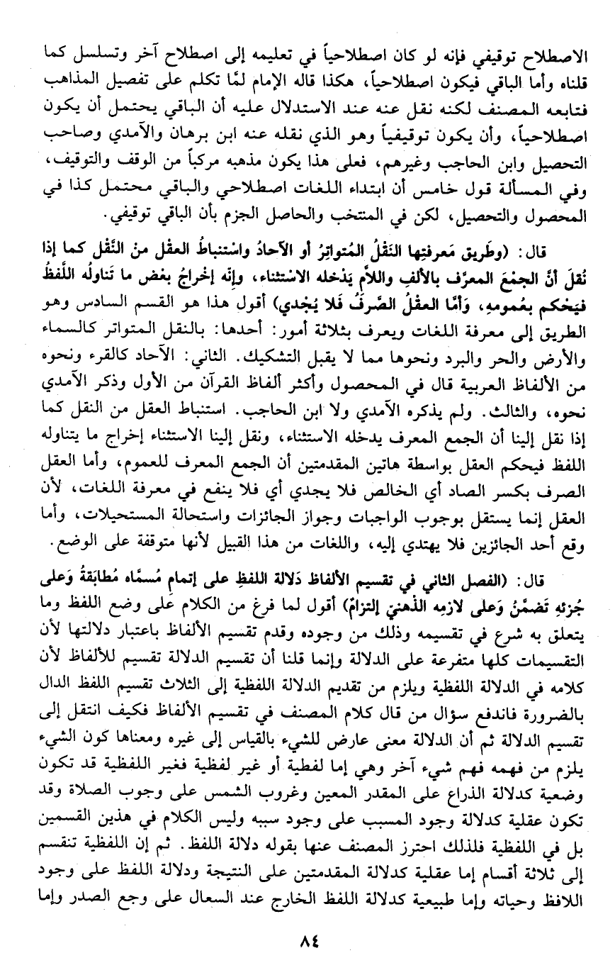 الاصطلاح توقيفي, فإنه لو كان اصطلاحيا في تعليمه إلى اصطلاح آخر وتسلسل كما قلناه, وأما الباقي فيكون اصطلاحيا، وهكذا قاله الإمام لما تكلم على تفصيل المذاهب, فتابعه المصنف لكنه نقل عنه عند الاستدلال عليه أن الباقي يحتمل أن يكون اصطلاحيا، وأن يكون توقيفيا وهو الذي نقله عنه ابن برهان والآمدي وصاحب التحصيل وابن الحاجب وغيرهم, فعلى هذا يكون مذهبه مركبا من الوقف والتوقيف، وفي المسألة قول خامس: أن ابتداء اللغات اصطلاحي والباقي محتمل, كذا في المحصول والتحصيل، لكن في المنتخب والحاصل الجزم بأن الباقي توقيفي.
