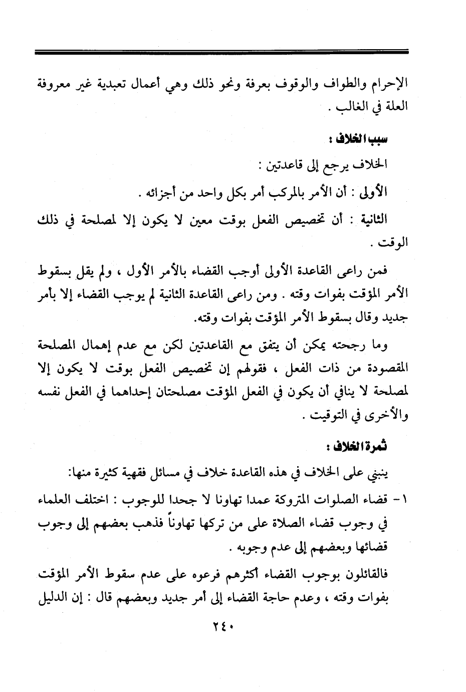 وما رجحته يمكن أن يتفق مع القاعدتين لكن مع عدم إهمال المصلحة المقصودة من ذات الفعل، فقولهم إن تخصيص الفعل بوقت لا يكون إلا لمصلحة لا ينافي أن يكون في الفعل المؤقت مصلحتان إحداهما في الفعل نفسه والأخرى في التوقيت.