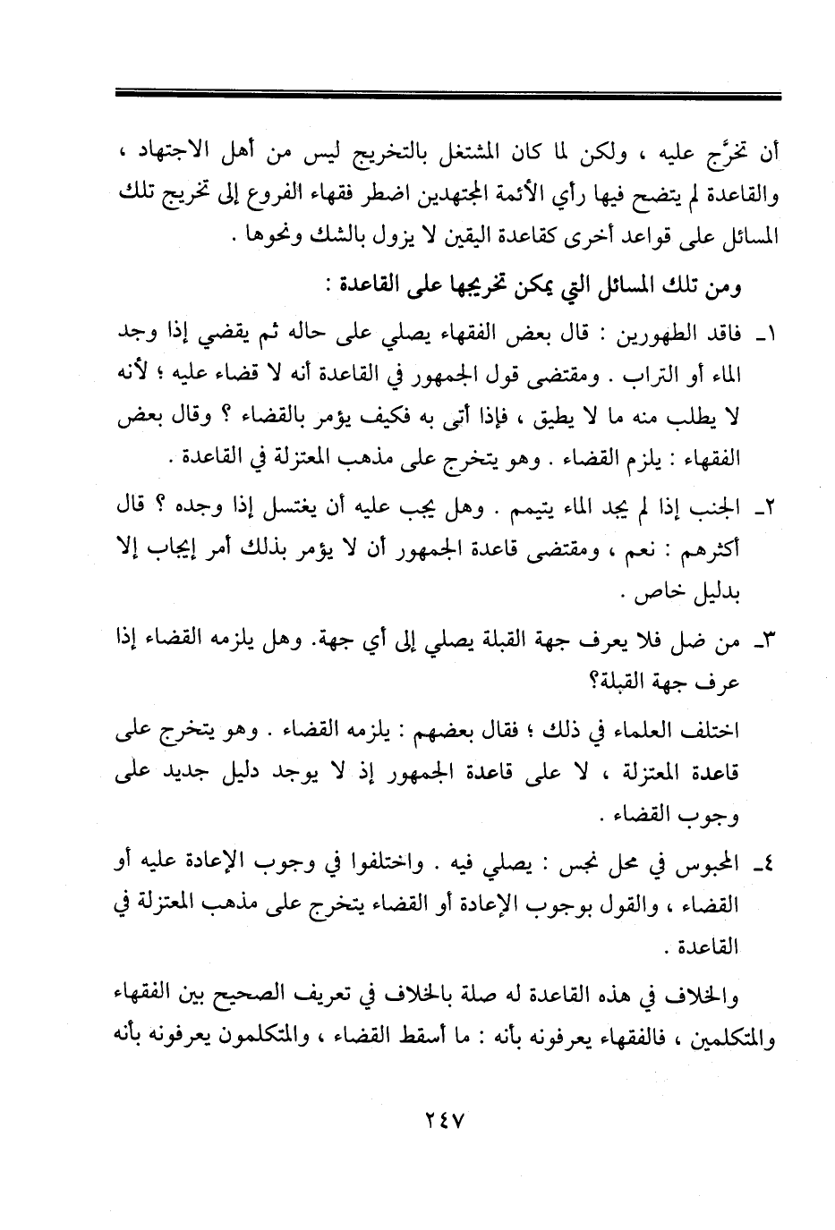 أن تخرَّج عليه، ولكن لما كان المشتغل بالتخريج ليس من أهل الاجتهاد، والقاعدة لم يتضح فيها رأي الأئمة المجتهدين اضطر فقهاء الفروع إلى تخريج تلك المسائل على قواعد أخرى كقاعدة اليقين لا يزول بالشك ونحوها.