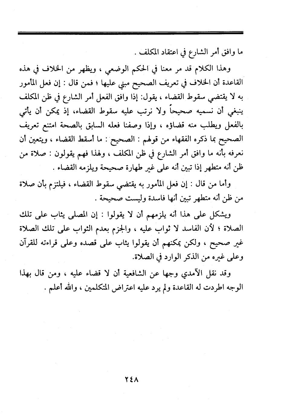 وقد نقل الآمدي وجها عن الشافعية أن لا قضاء عليه، ومن قال بهذا الوجه اطردت له القاعدة ولم يرد عليه اعتراض المتكلمين، والله أعلم.