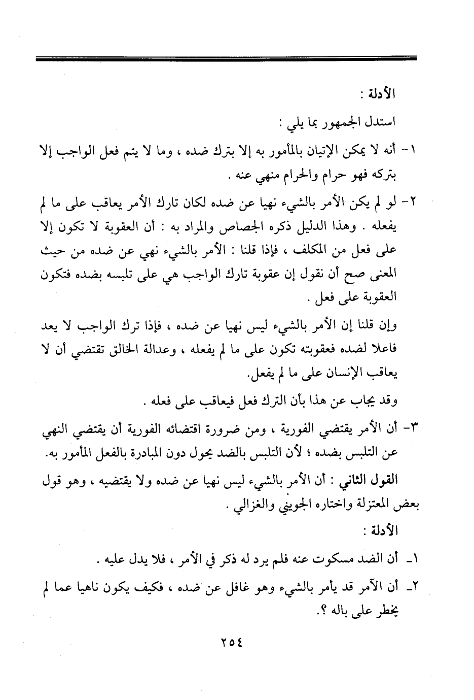 ٣ - أن الأمر يقتضي الفورية، ومن ضرورة اقتضائه الفورية أن يقتضي النهي عن التلبس بضده؛ لأن التلبس بالضد يحول دون المبادرة بالفعل المأمور به.