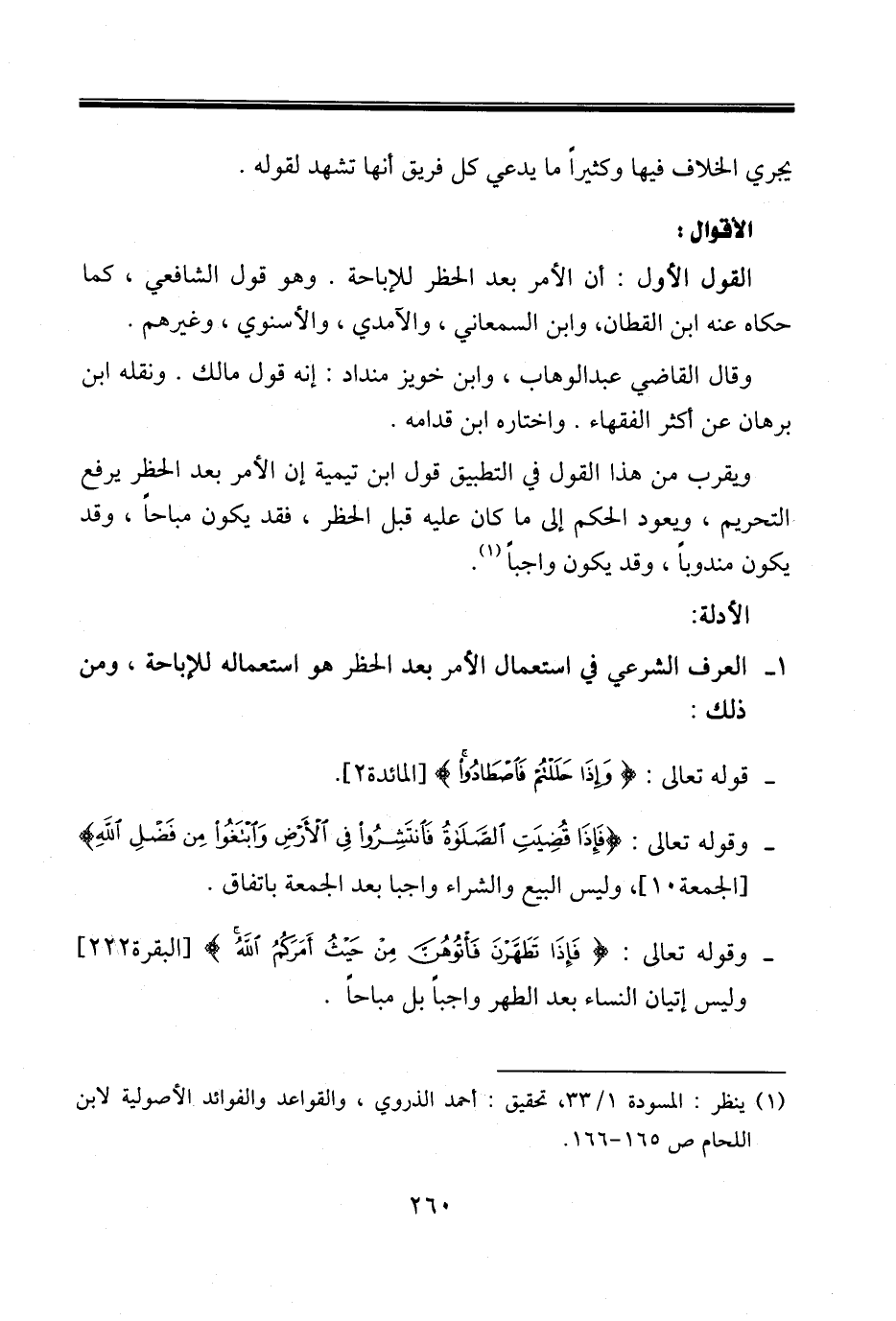 (١) ينظر: المسودة ١/ ٣٣، تحقيق: أحمد الذروي، والقواعد والفوائد الأصولية لابن اللحام ص ١٦٥ - ١٦٦.