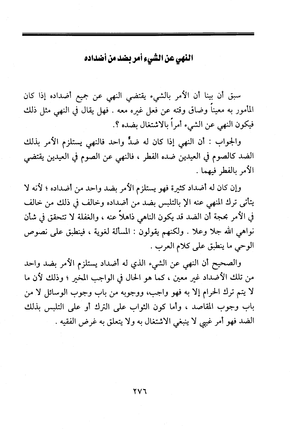 والجواب: أن النهي إذا كان له ضدٌّ واحد فالنهي يستلزم الأمر بذلك الضد كالصوم في العيدين ضده الفطر، فالنهي عن الصوم في العيدين يقتضي الأمر بالفطر فيهما.
