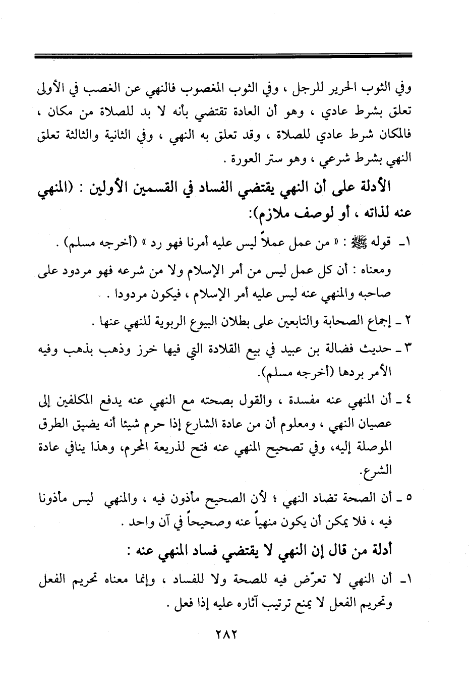 الأدلة على أن النهي يقتضي الفساد في القسمين الأولين: (المنهي عنه لذاته، أو لوصف ملازم):