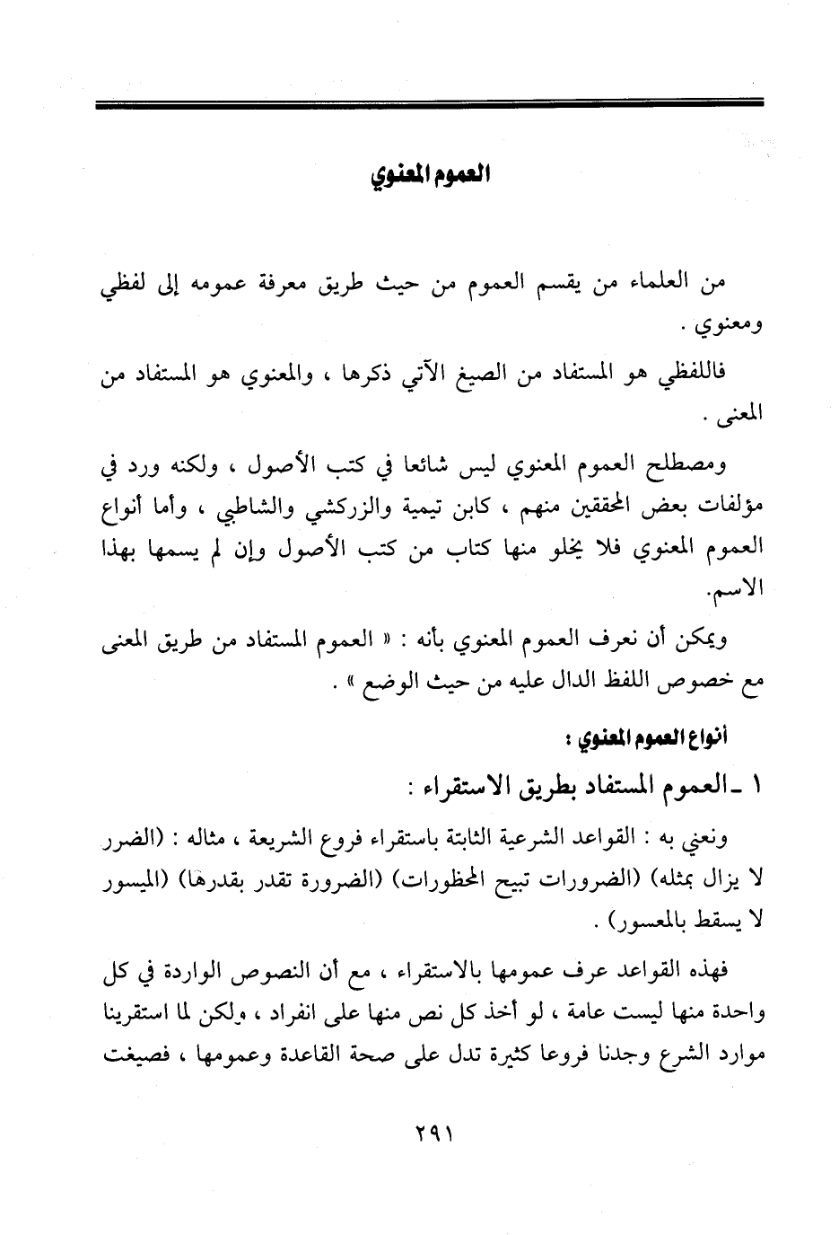 ١ - العموم المستفاد بطريق الاستقراء: