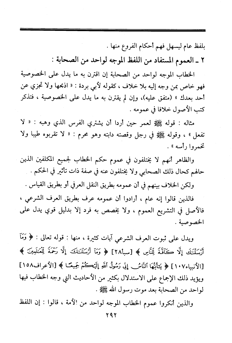 والظاهر أنهم لا يختلفون في عموم حكم الخطاب لجميع المكلفين الذين حالهم كحال ذلك الصحابي ولا يختلفون عنه في صفة ذات تأثير في الحكم.