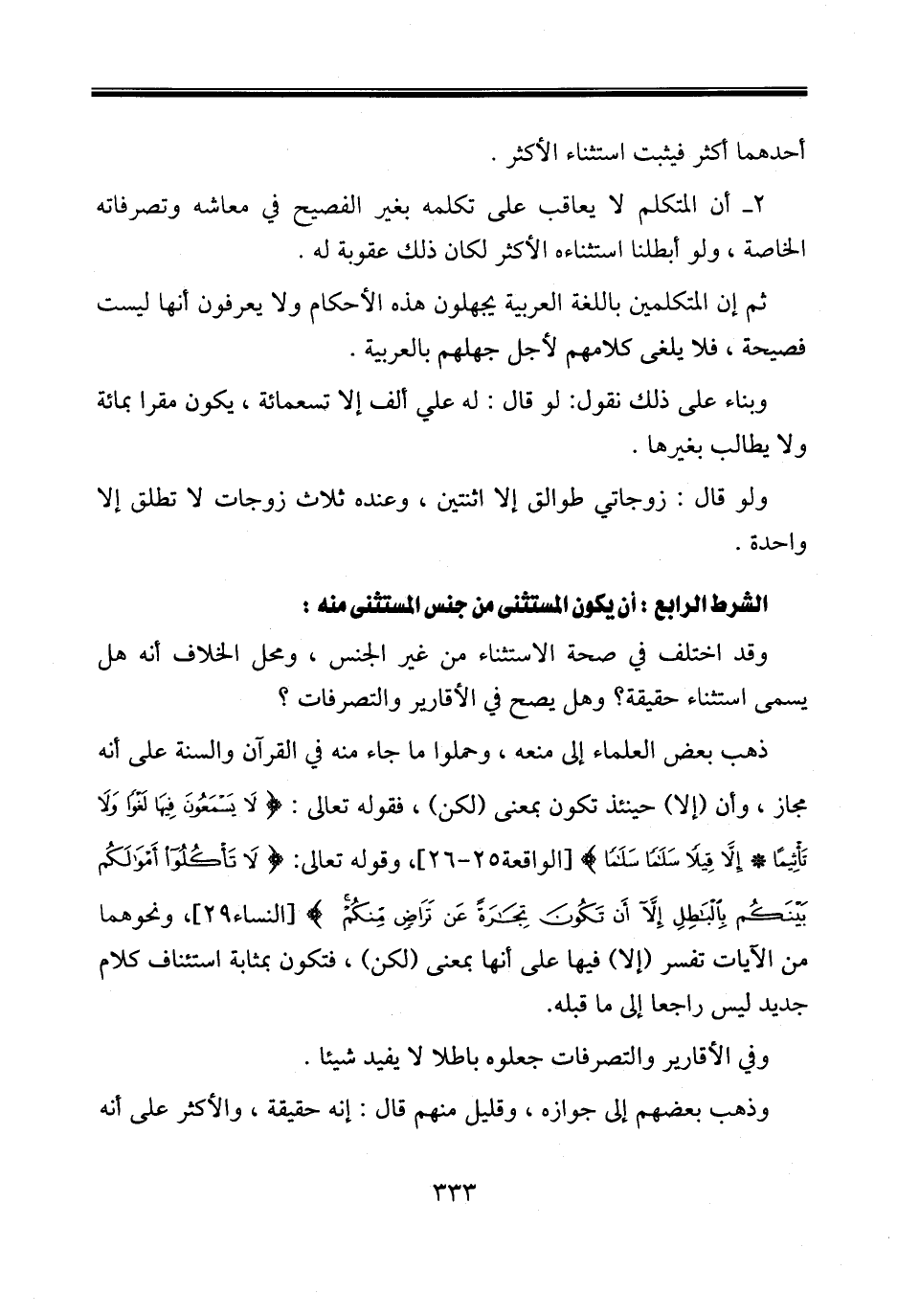 ٢ـ أن المتكلم لا يعاقب على تكلمه بغير الفصيح في معاشه وتصرفاته الخاصة، ولو أبطلنا استثناءه الأكثر لكان ذلك عقوبة له.
