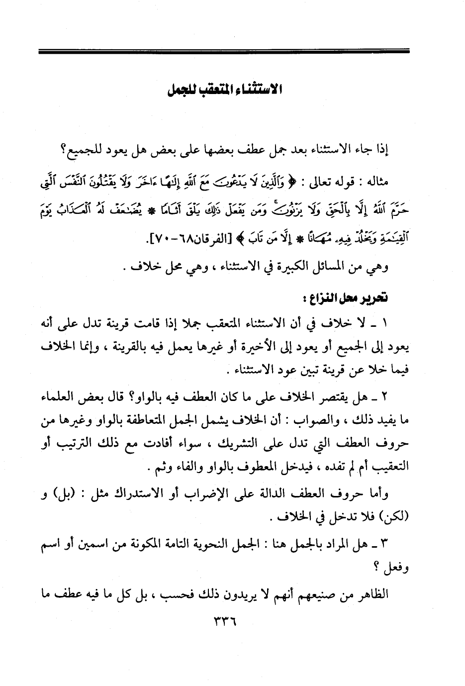 إذا جاء الاستثناء بعد جمل عطف بعضها على بعض هل يعود للجميع؟