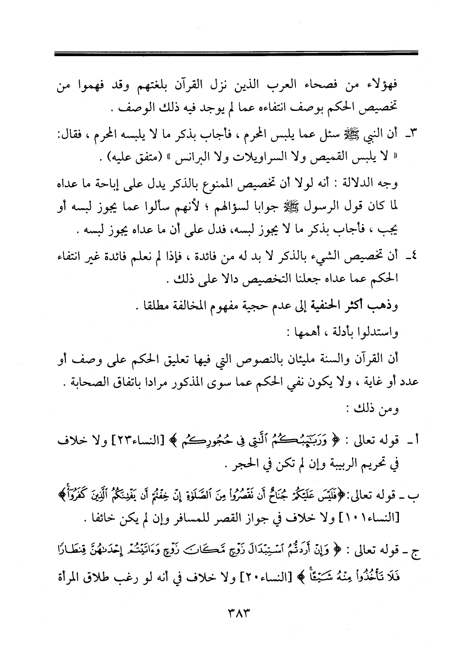وذهب أكثر الحنفية إلى عدم حجية مفهوم المخالفة مطلقا.