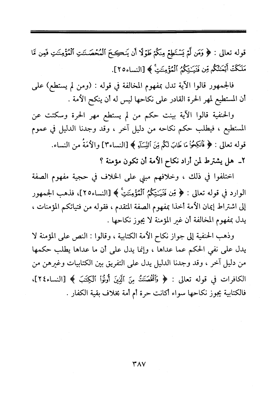٢ - هل يشترط لمن أراد نكاح الأمة أن تكون مؤمنة؟