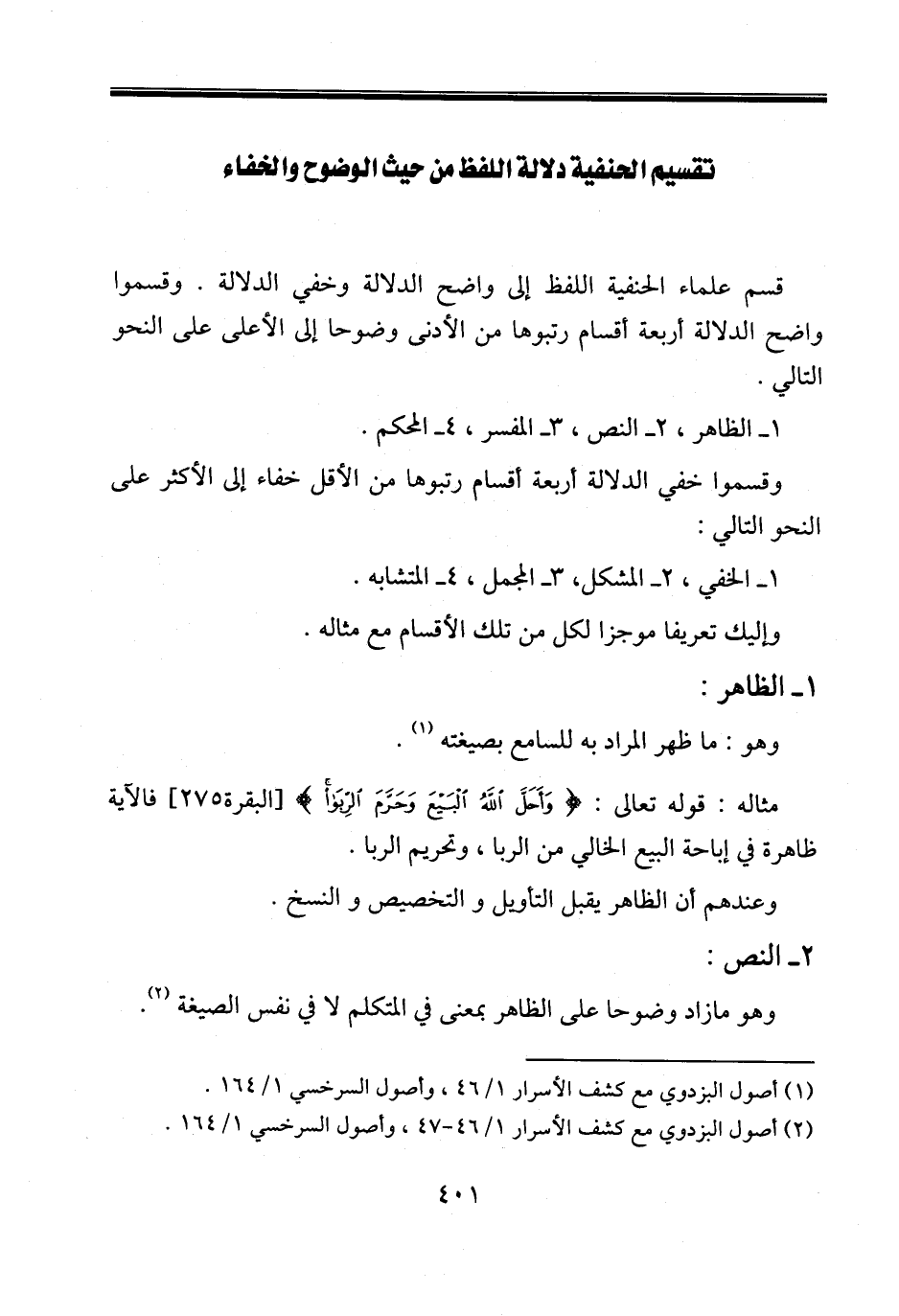 (٢) أصول البزدوي مع كشف الأسرار ١/ ٤٦ - ٤٧، وأصول السرخسي ١/ ١٦٤.