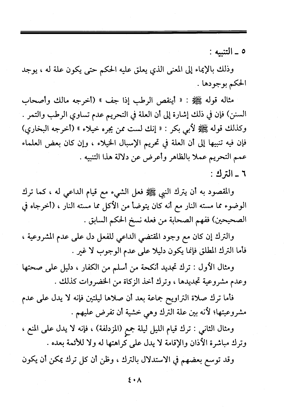ومثال الأول: ترك تجديد أنكحة من أسلم من الكفار، دليل على صحتها وعدم مشروعية تجديدها، وترك أخذ الزكاة من الخضروات كذلك.