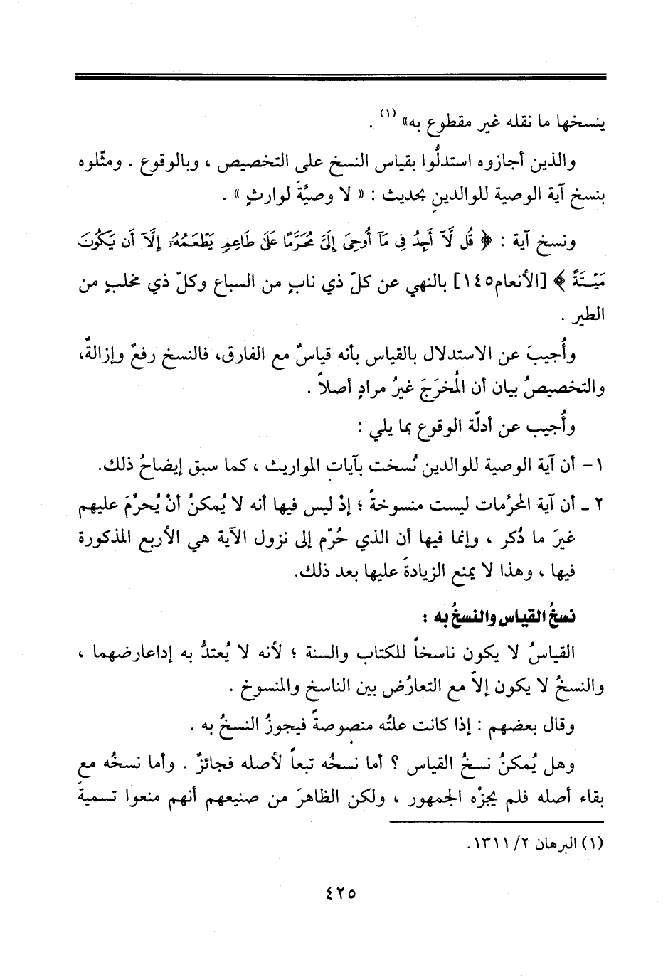 وهل يُمكنُ نسخُ القياس؟ أما نسخُه تبعاً لأصله فجائزٌ. وأما نسخُه مع بقاء أصله فلم يجزْه الجمهور، ولكن الظاهرَ من صنيعهم أنهم منعوا تسميةَ