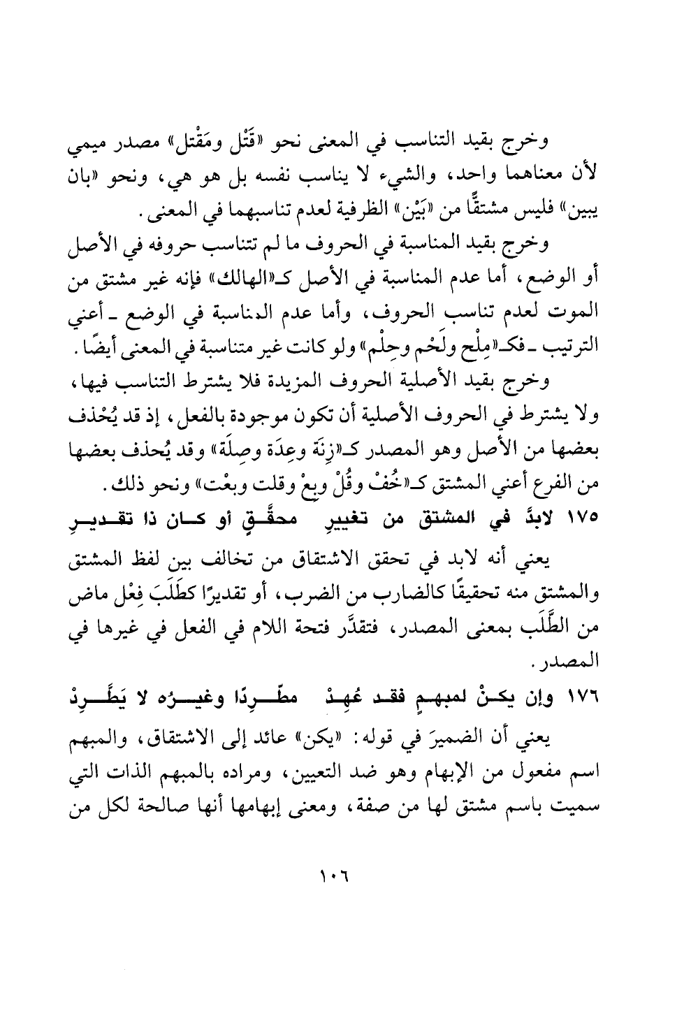 175 لابد في المشتق من تغيير محقق أو كان ذا تقدير