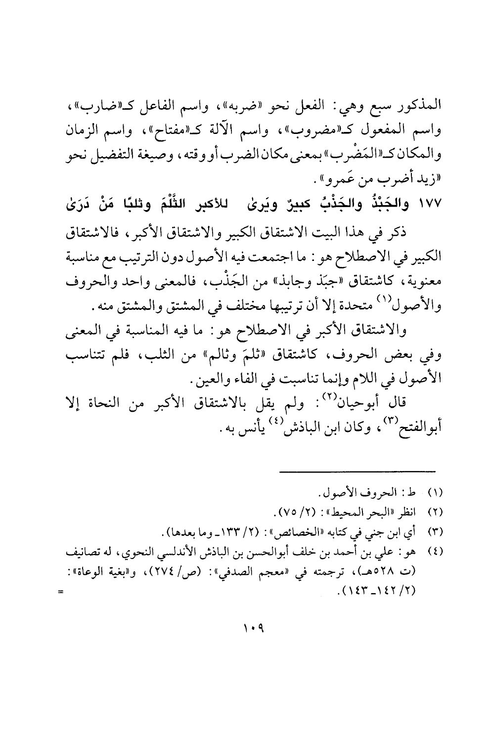 ذكر في هذا البيت الاشتقاق الكبير والاشتقاق الأكبر، فالاشتقاق