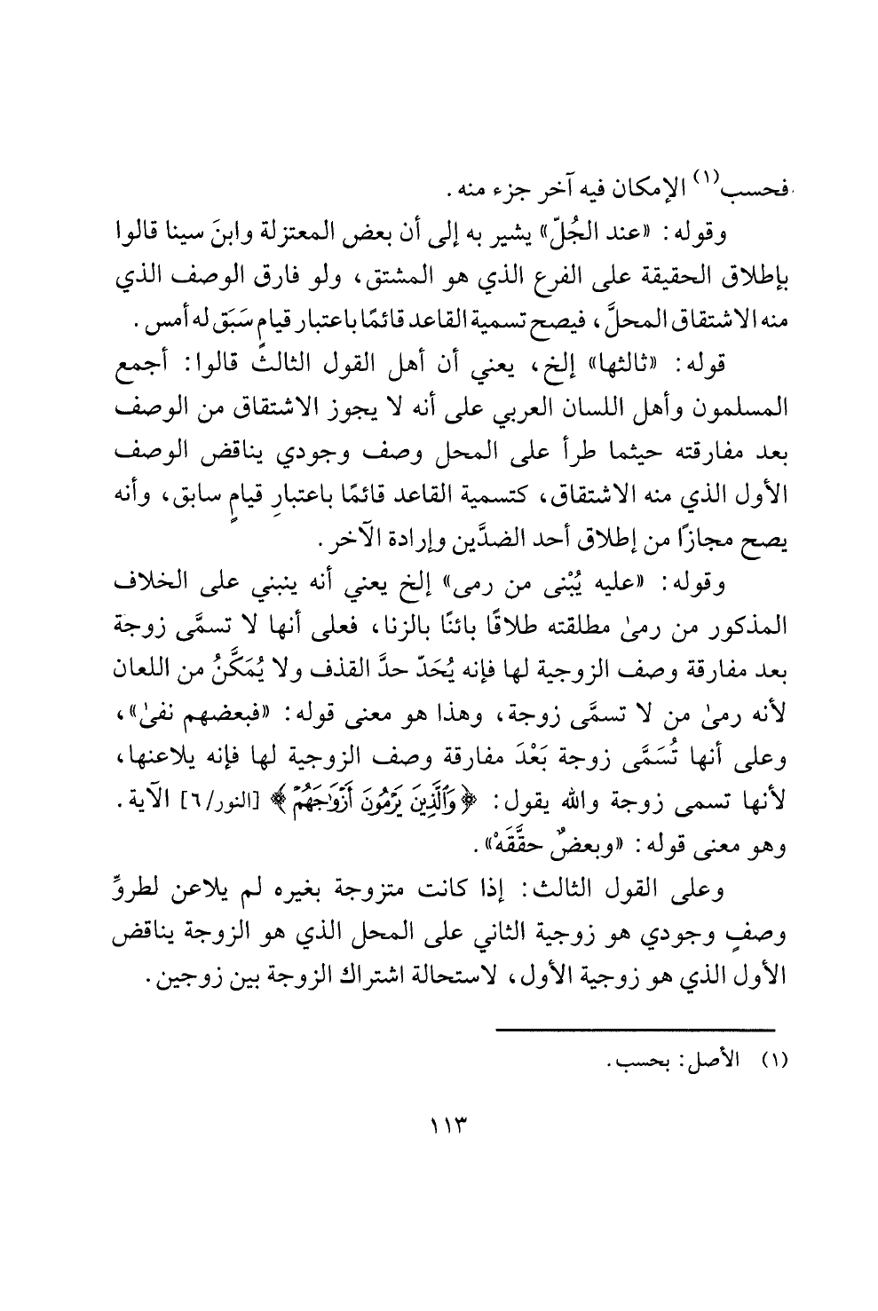 المسلمون و هل اللسان العربي على أنه لا يجوز الاشتقاق من الوصف