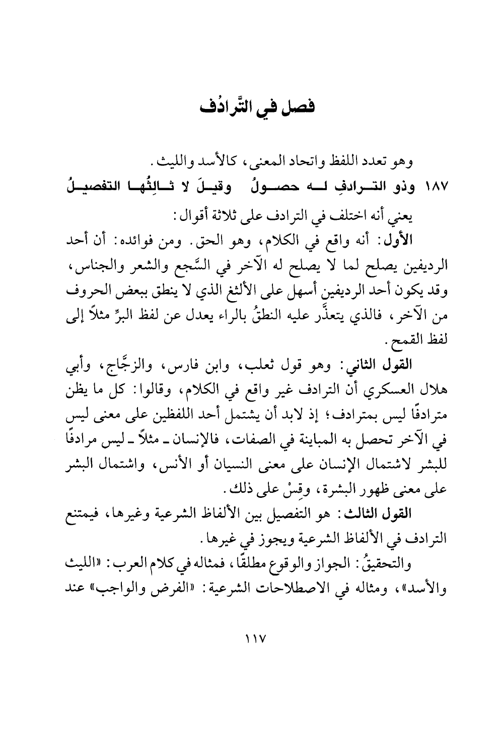 187 وذو الترادف له حصو 4 وقيل لا ثالثها التفصيل