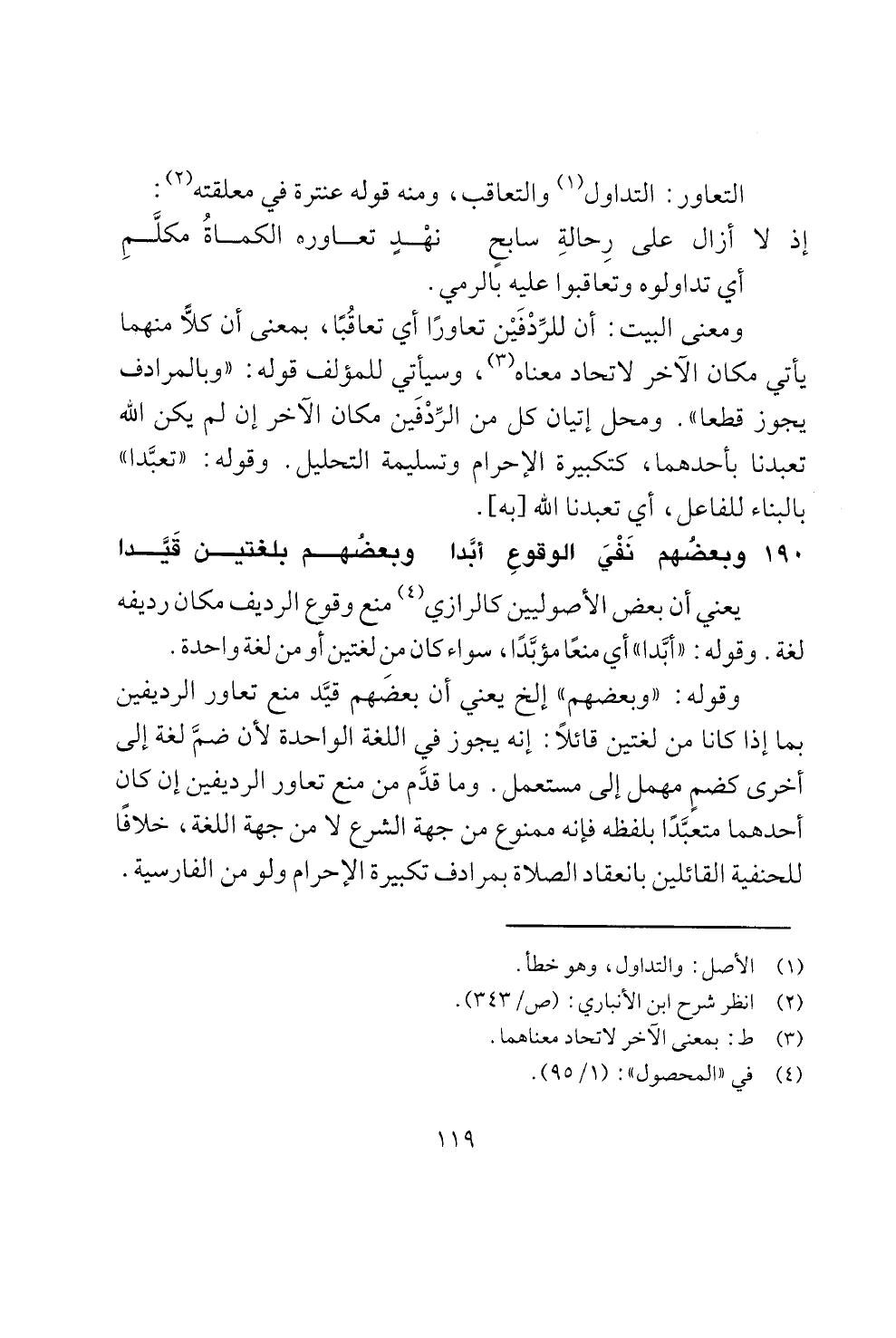 ومعنى البيت: أن للردفين تعاورا أي تعاقبا، بمعنى أن كلا منهما