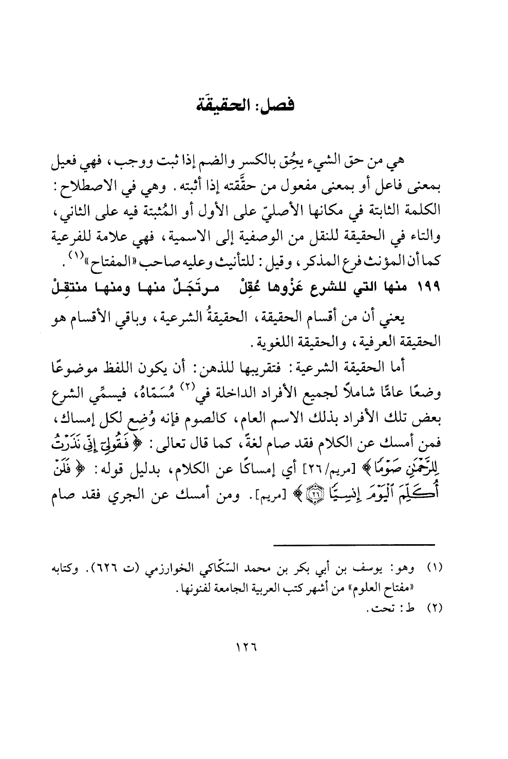 يعني أن من أقسام الحقيقة، الحقيقة الشرعية، وباقي الاقسام هو