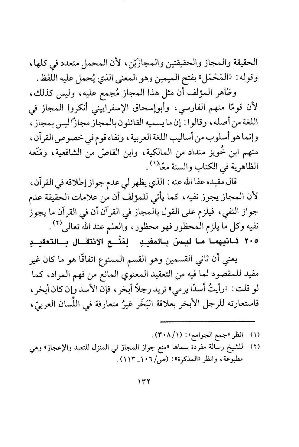 للشيخ رسالة مفردة سماها "منع جواز المجاز في المنزل للتعبد والإعجاز" وهي