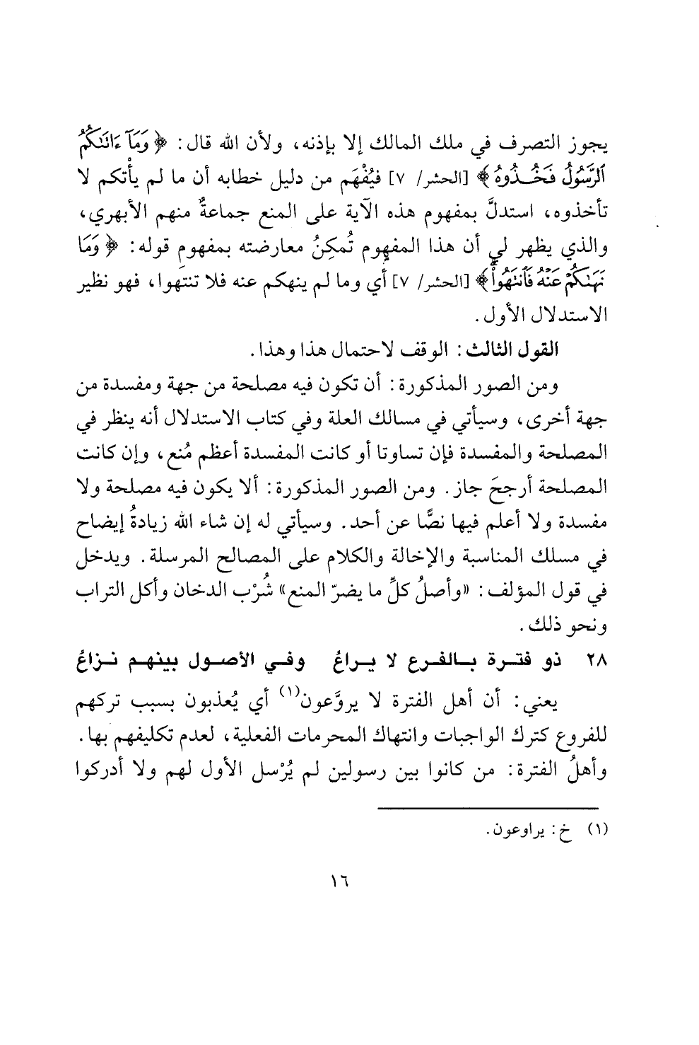 28 ذو فترة بالفرع لا يراغ وفي الأصول بينهم نزاغ